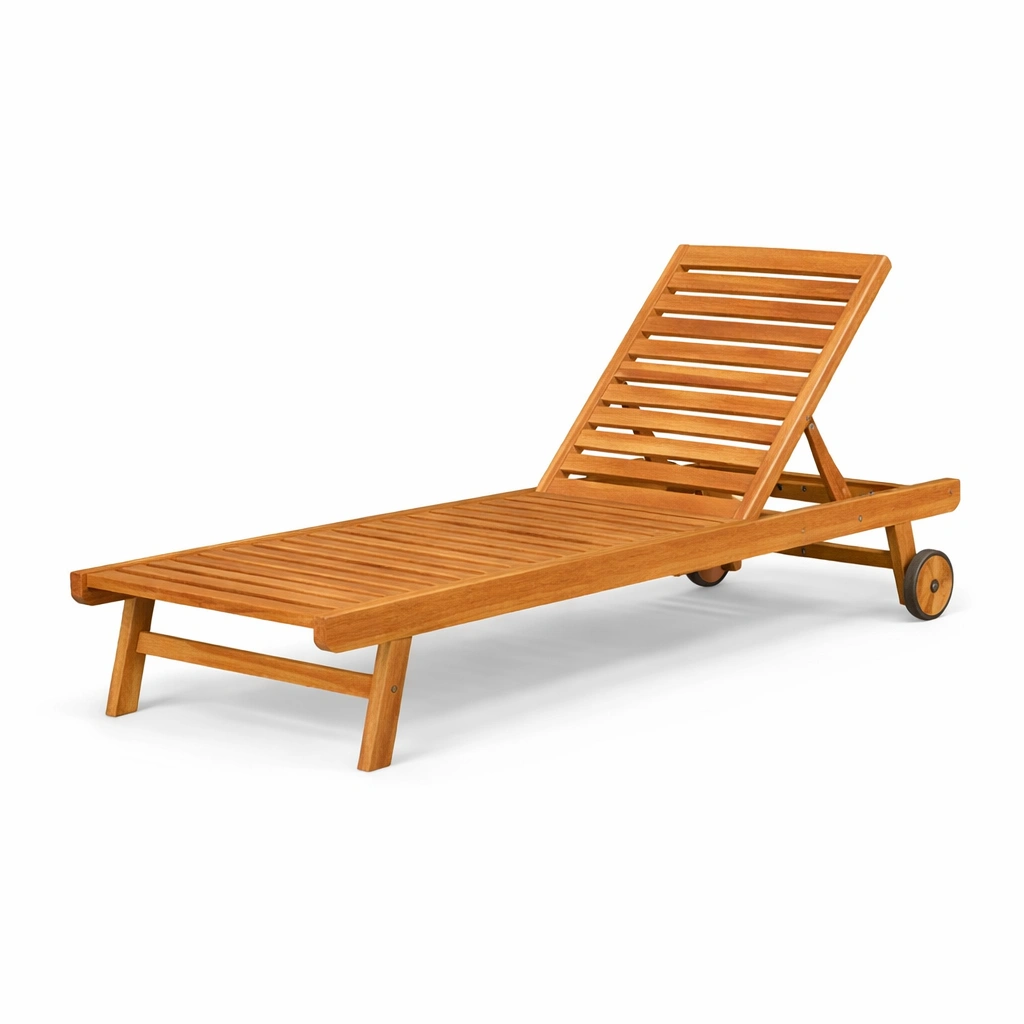Tumbona de madera de teca con respaldo ajustable y ruedas